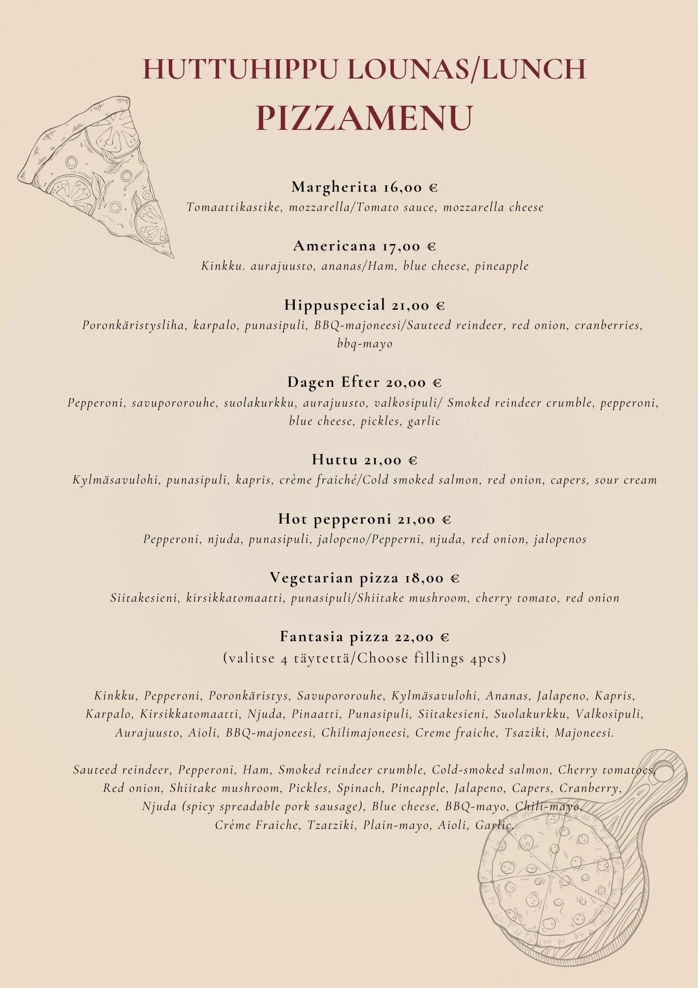 Here you can see Huttuhippu´s Lunch Menu - Welcome and enjoy at 12pm to 5pm!