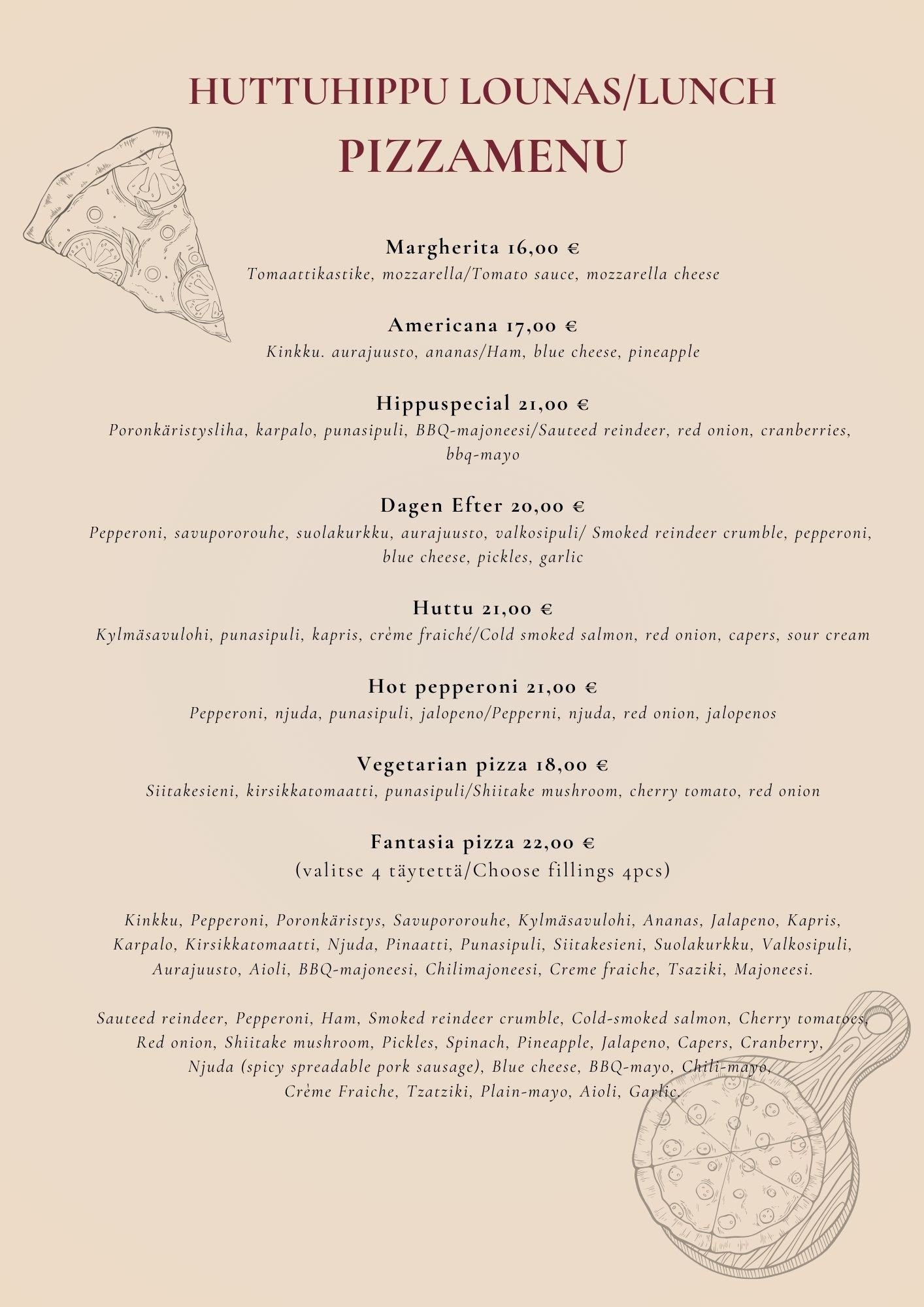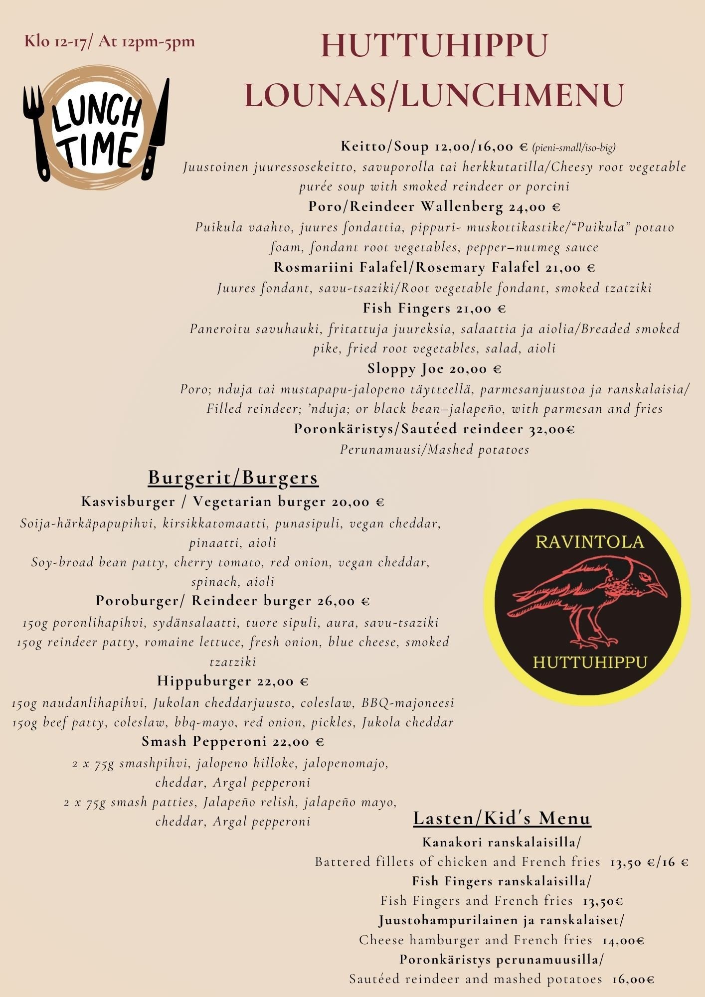 Alta näet Huttuhipun lounasmenun – Tervetuloa herkuttelemaan klo 12–17!