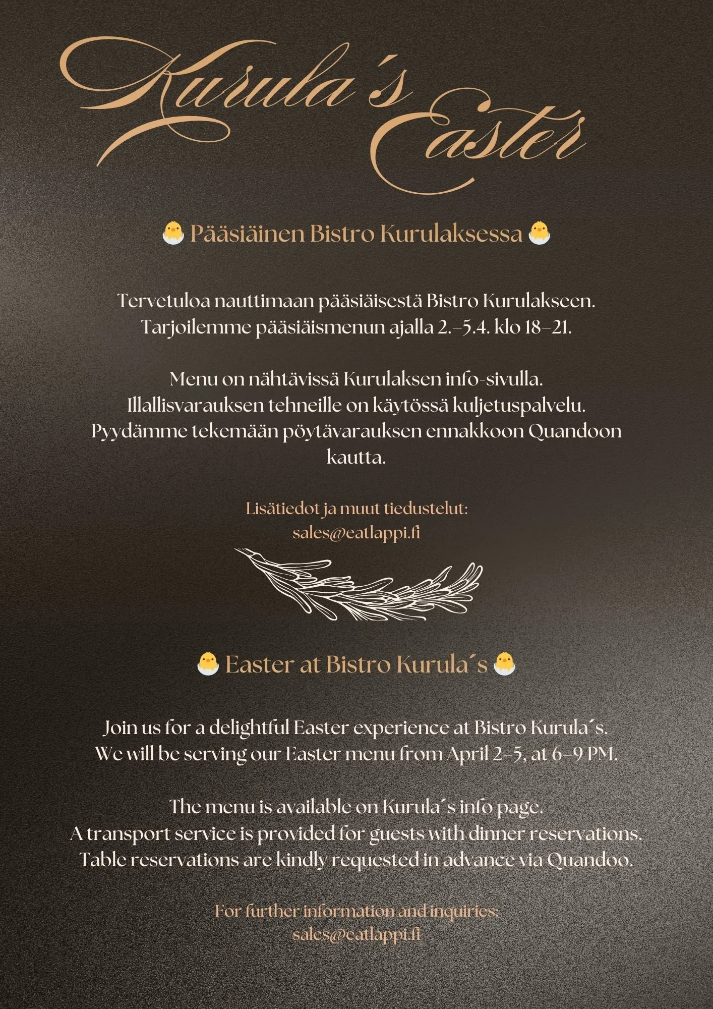 Tällä sivulla kerromme ajantasaisesti kaikista ravintoloitamme koskevista muutoksista sekä ilmoitamme tärkeimmät päivitykset myös sosiaalisen median kanavissamme.// All important updates can be found on this page.